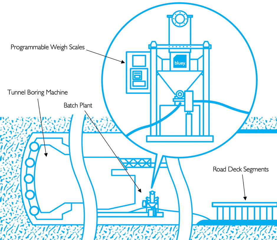 The solution that the engineers developed was simple and resourceful. The team designed and built a miniature batch plant with programmable weigh scales and grout mixer/pump which was attached to the back of each TBM. From there, the grout was pumped up to 100m through the tunnel to the road deck segments.