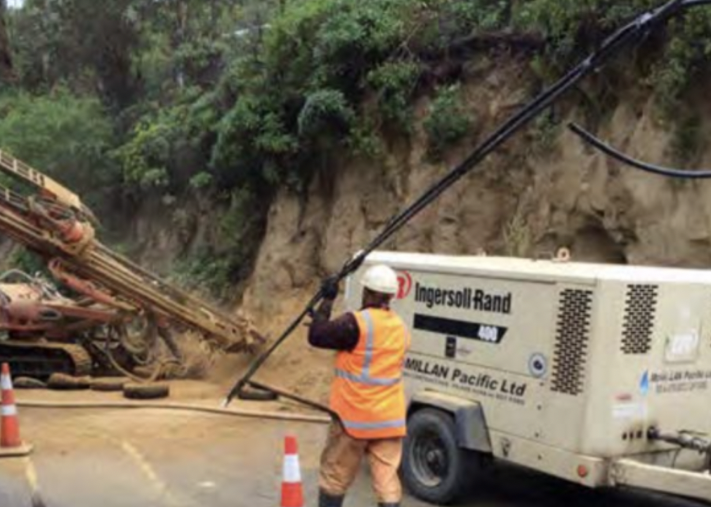 does not require double corrosion protection. As GRP is a corrosion-resistant polymer, it does not require the same large hole as regular steel, reducing the hole size by up to 50%. Meaning 50% less drilling (image right), less earth removal and reduced transport costs. The use of GRP in ground anchors and soil nails created new demand of customers for FiReP and Bluey as word of GRP products continues to be adopted as best practise throughout the industry.