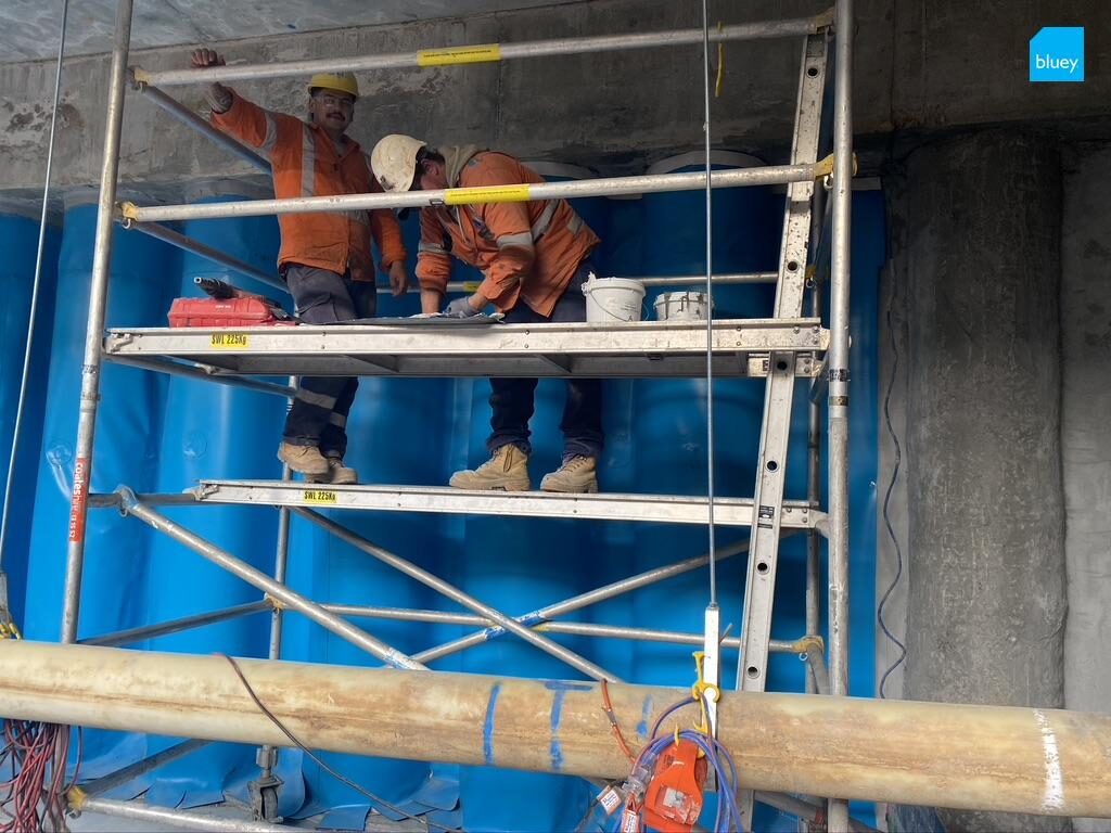 BluSeal PVC Tunnel Liner is used for lining basements, bored and driven tunnels, cut and cover tunnels, cross passages, shafts and underground structures. The Tunnel Liner comes in a range of thicknesses for various performance applications. The membrane is applied to structures to prevent water inflow and provide asset protection.